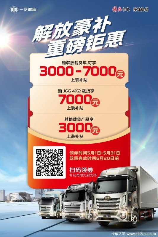 解放豪补重磅钜惠:给载货上装,解放“券”力支持!