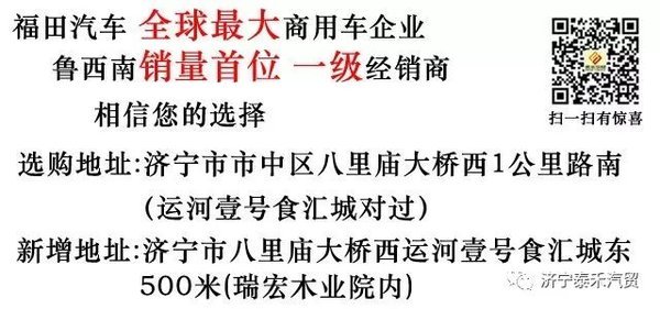 福田卡车大放价,五重豪礼惠全城!最后三天,来就送,买即赠,购就返。试驾还送价值398元高档机械腕表一块 ,给福田点个赞,买福田高档微卡,就到(济宁市任城区八里庙大桥西1公里路南济宁泰禾汽贸)