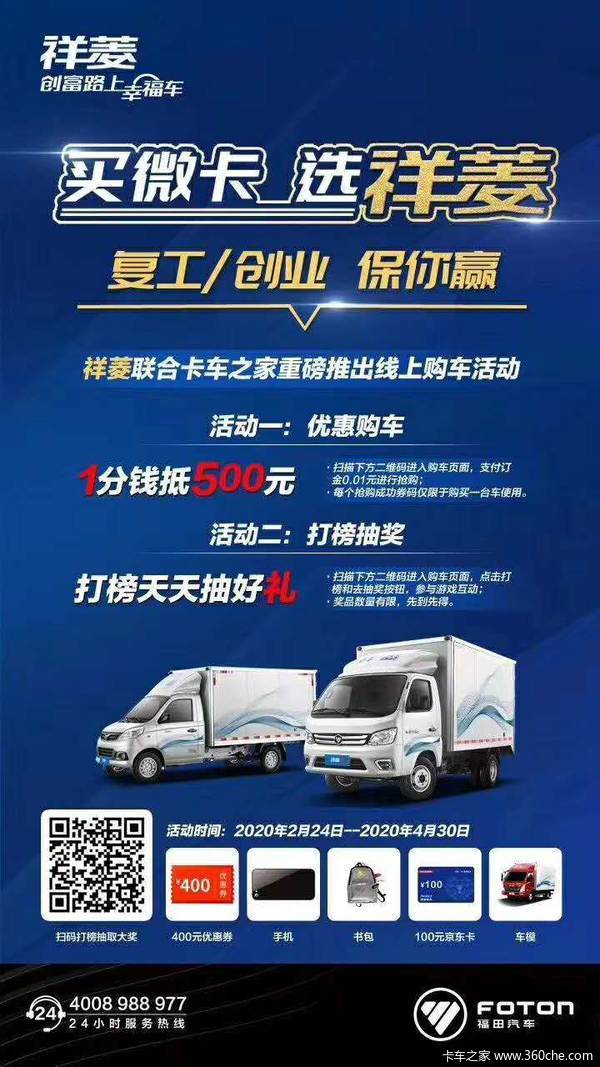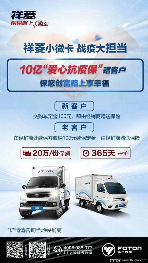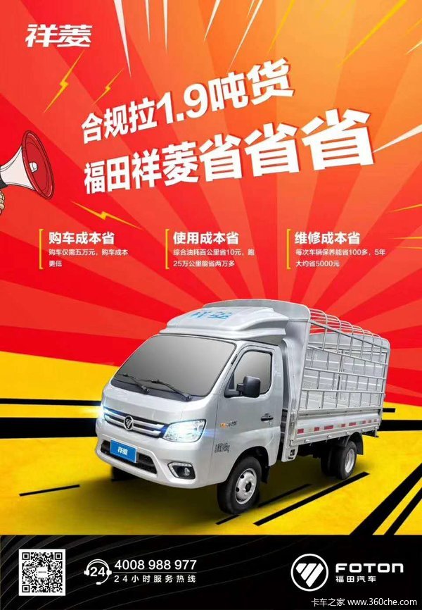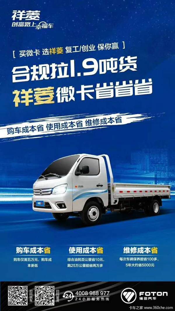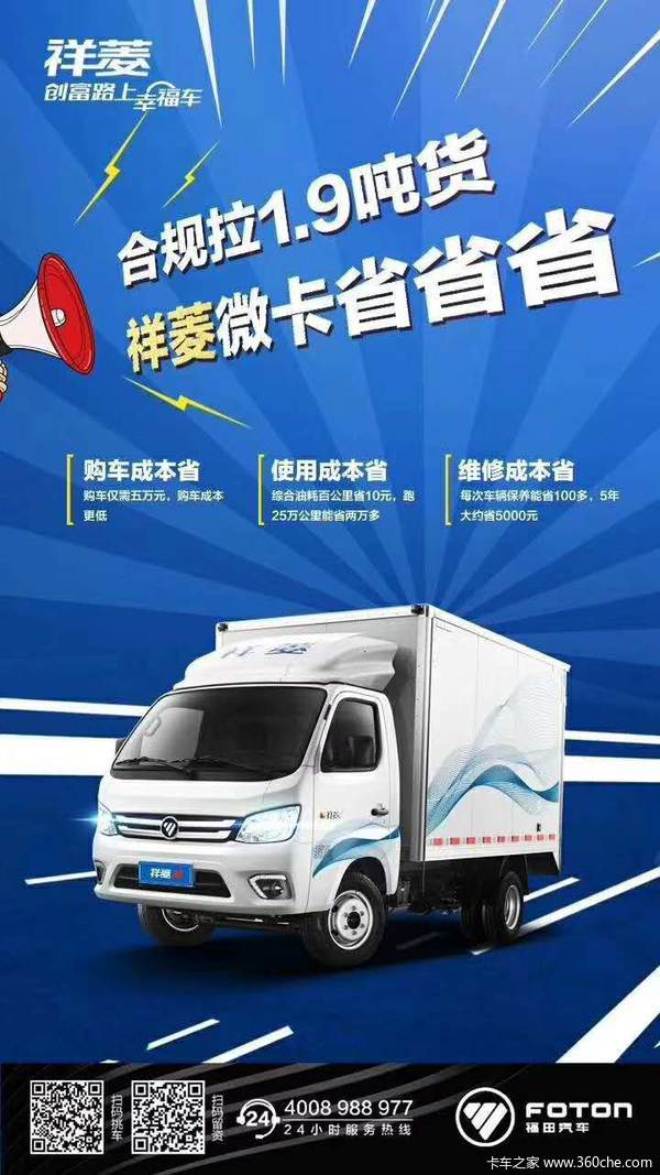 我公司主要经营福田祥菱M系列,福田祥菱V1 V2系列和驭菱系列车型(单排/排半/双排平板,单/双排厢式运输车,翼开启厢式车,冷藏车等多种车型),我公司承诺在我公司购车:当天购车,当天上牌,贷款分期当日即可提车!而且没有额外隐形消费全程零元办牌。只为您的满意,是对我公司最大的鼓励。