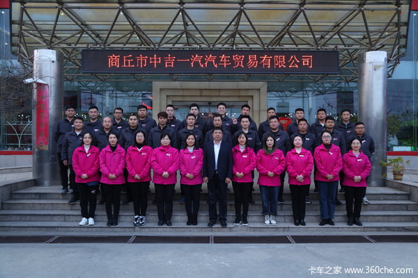 商丘市中吉一汽汽车贸易有限公司成立于2001年8月10日,坐落于豫东平原,地理位置十分优越,位于豫鲁苏皖四省交界处,建有一汽集团允许的标准大型解放4S形象店,为一汽解放全品系经销商,是商丘市市政府招商引资企业,位于商丘市平原南路1136号,占地30亩,公司现有员工60人,其中中级以上职称10人,设有销售部、市场部、销贷部、运输公司、服务部等,周边交通便利,云集了众多汽车经销商及运输公司,服务范围覆盖整个商丘地区及山东、安徽等周边地区。 随着标准化流程的实施并通过考核,年销量达到1500余台,解放的市场份额达到35%,多次被一汽解放汽车销售有限公司评为“功勋经销商、优秀经销商、明星经销商”并于2015年授予“三星经销商” 2016、2017年年授予“明星经销商”。